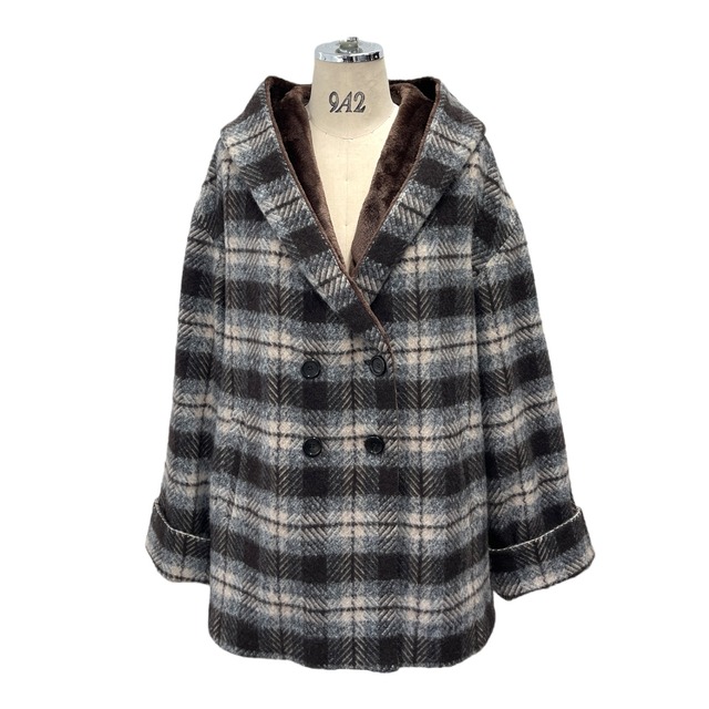 SALE【ayane】フーデッドチェック柄コート (ブラウン系/12) 874816 アヤン