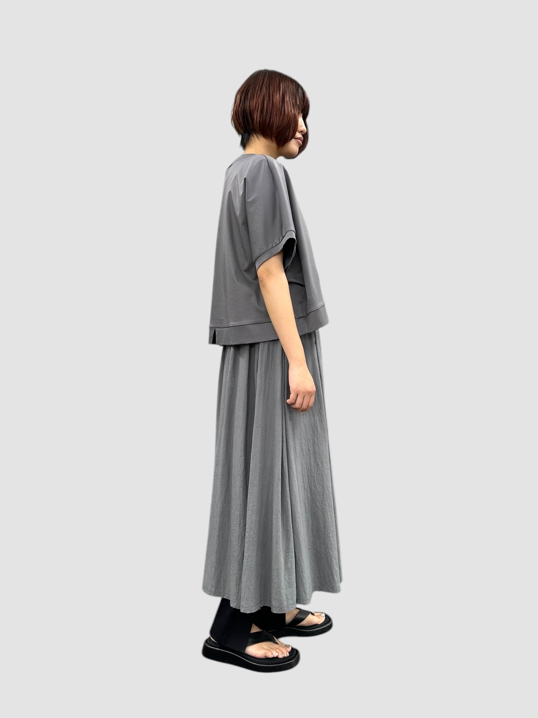 ハイクオリティなカットソーとテンセル・ナイロン素材とのドッキングワンピース。
