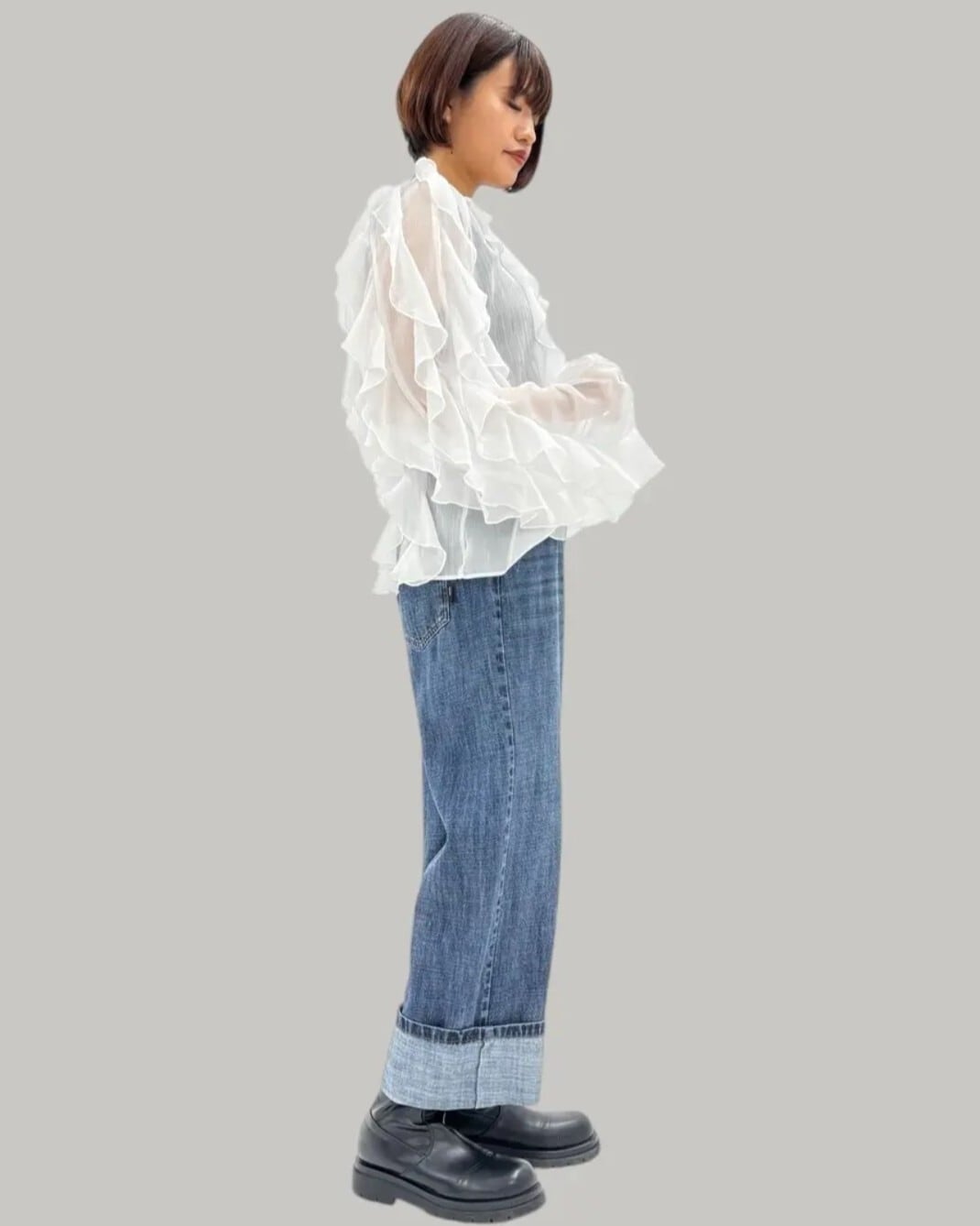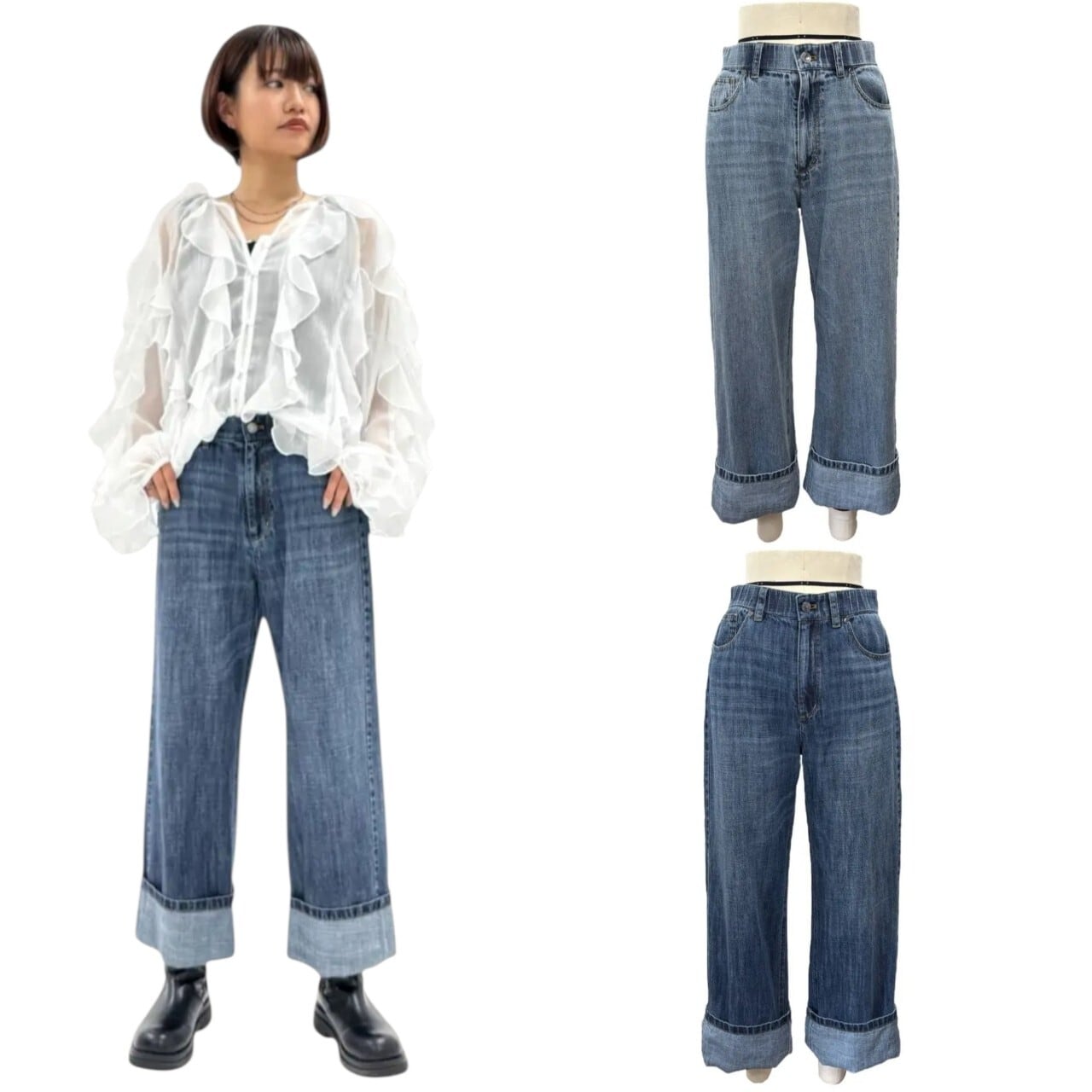 深めにターンバックしたままの感じでワンサイズアップして、ゆるっとコーデがおすすめです☆