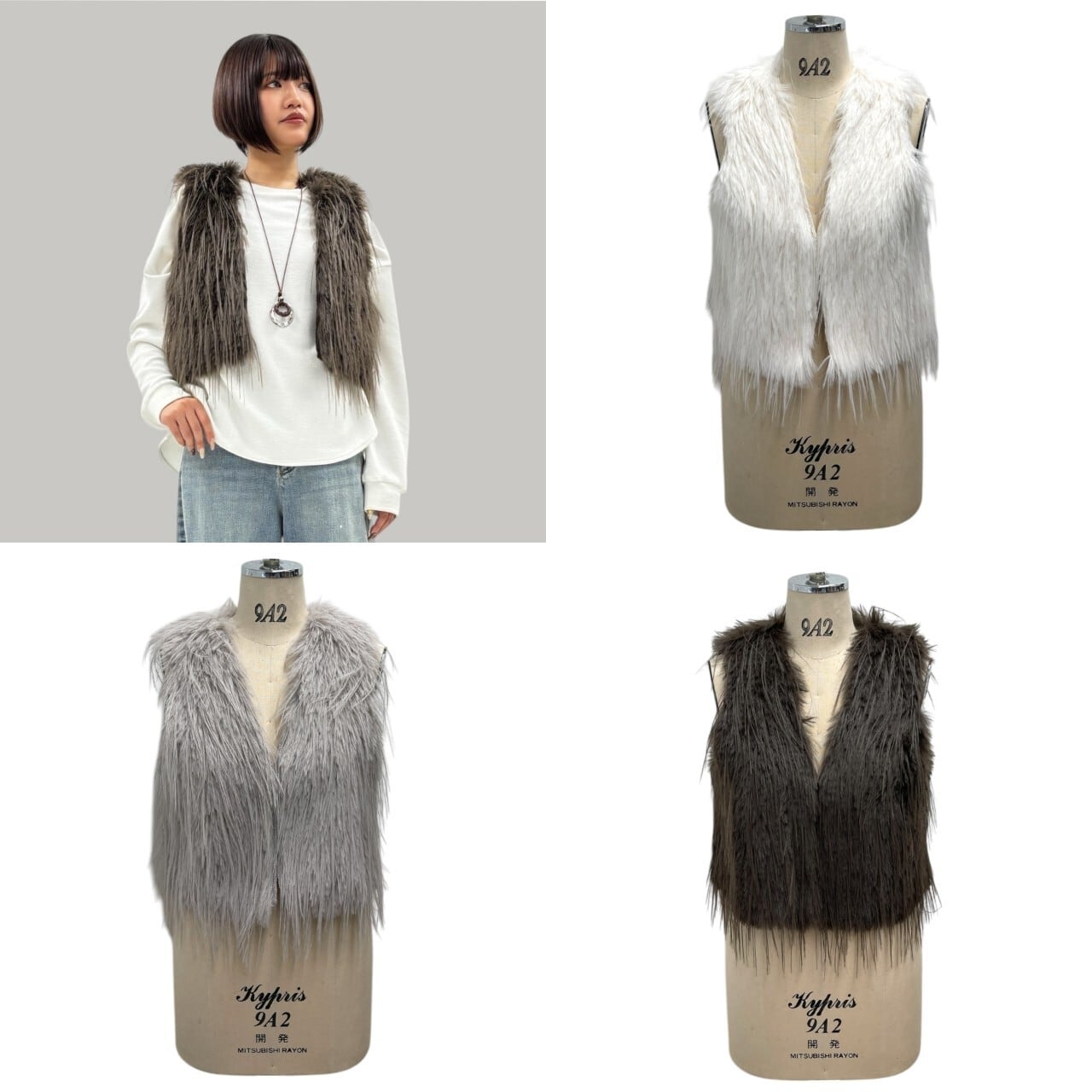 ロングヘアーのエコファーが個性的でかわいいベスト。