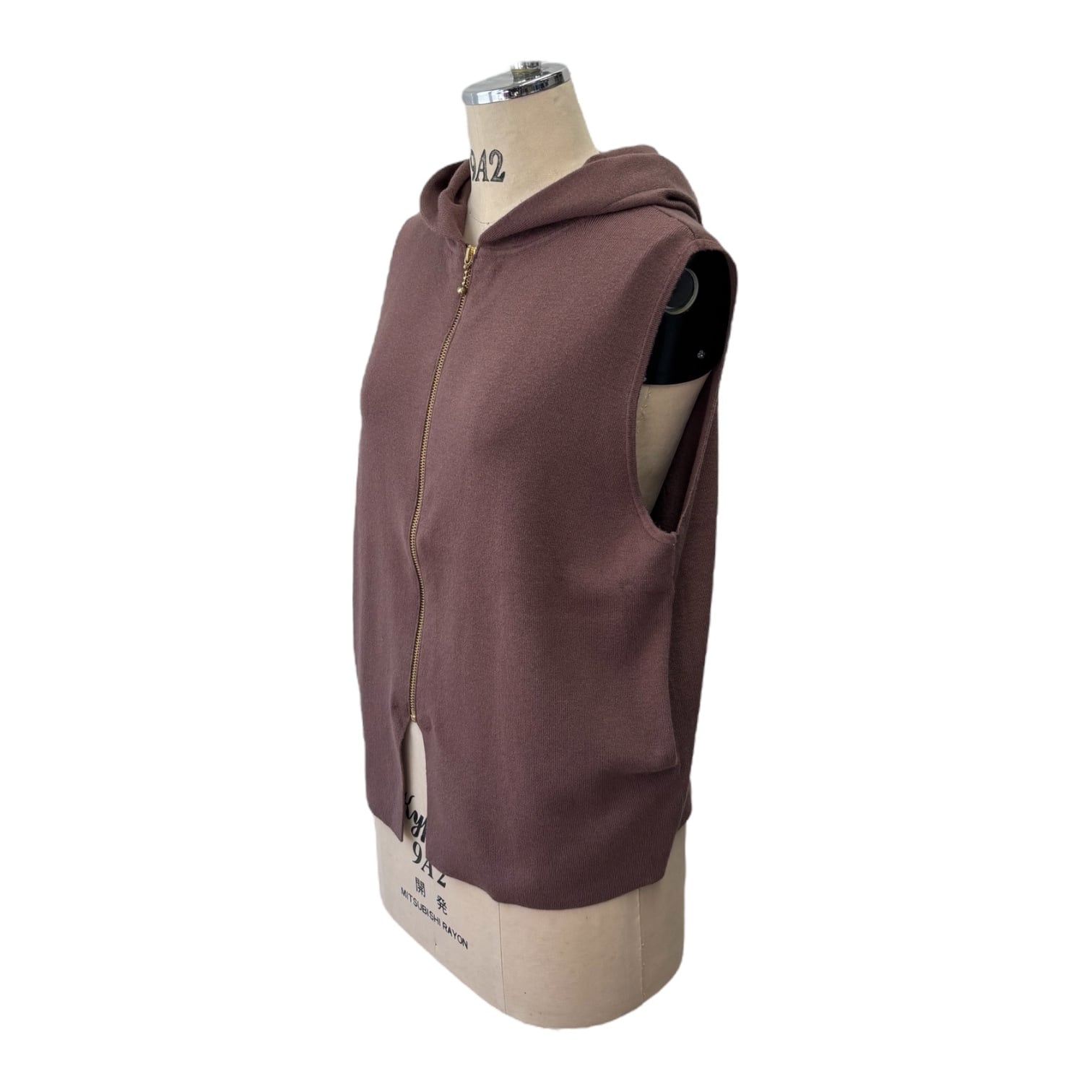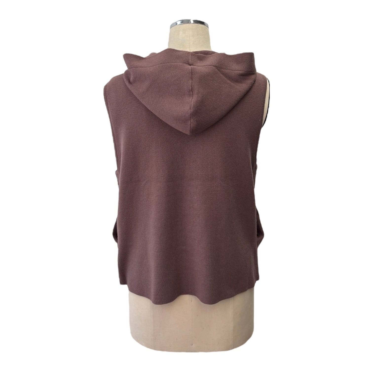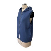薄手のニットで、カットソーの上に羽織ったり、アウターの下に着用してフードを出してコーデしたりと、あると便利なベストです。