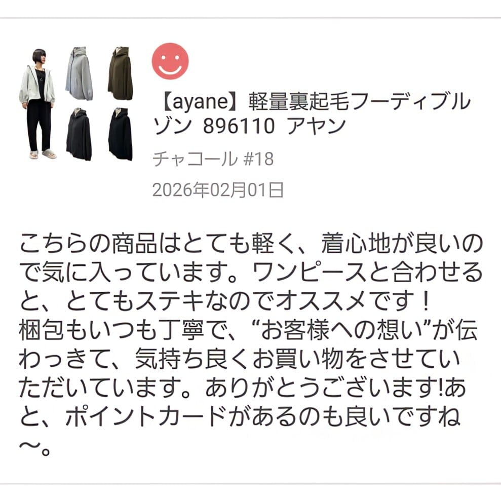 SALE【ayane】軽量裏起毛フーディブルゾン 896110 アヤン