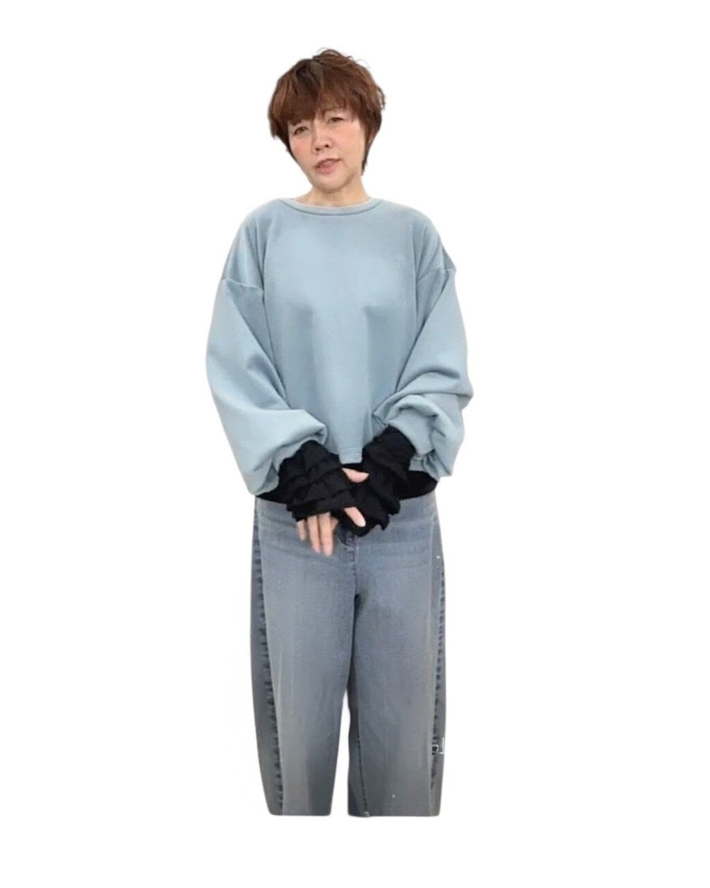 シンプルなデザインのプルオーバーがとても大人カジュアルな印象に仕上げてくれます。