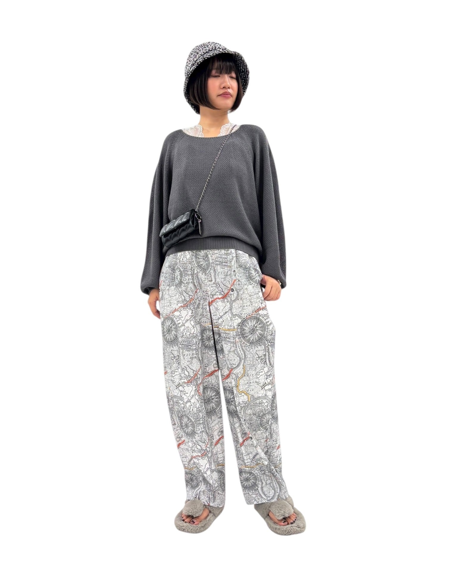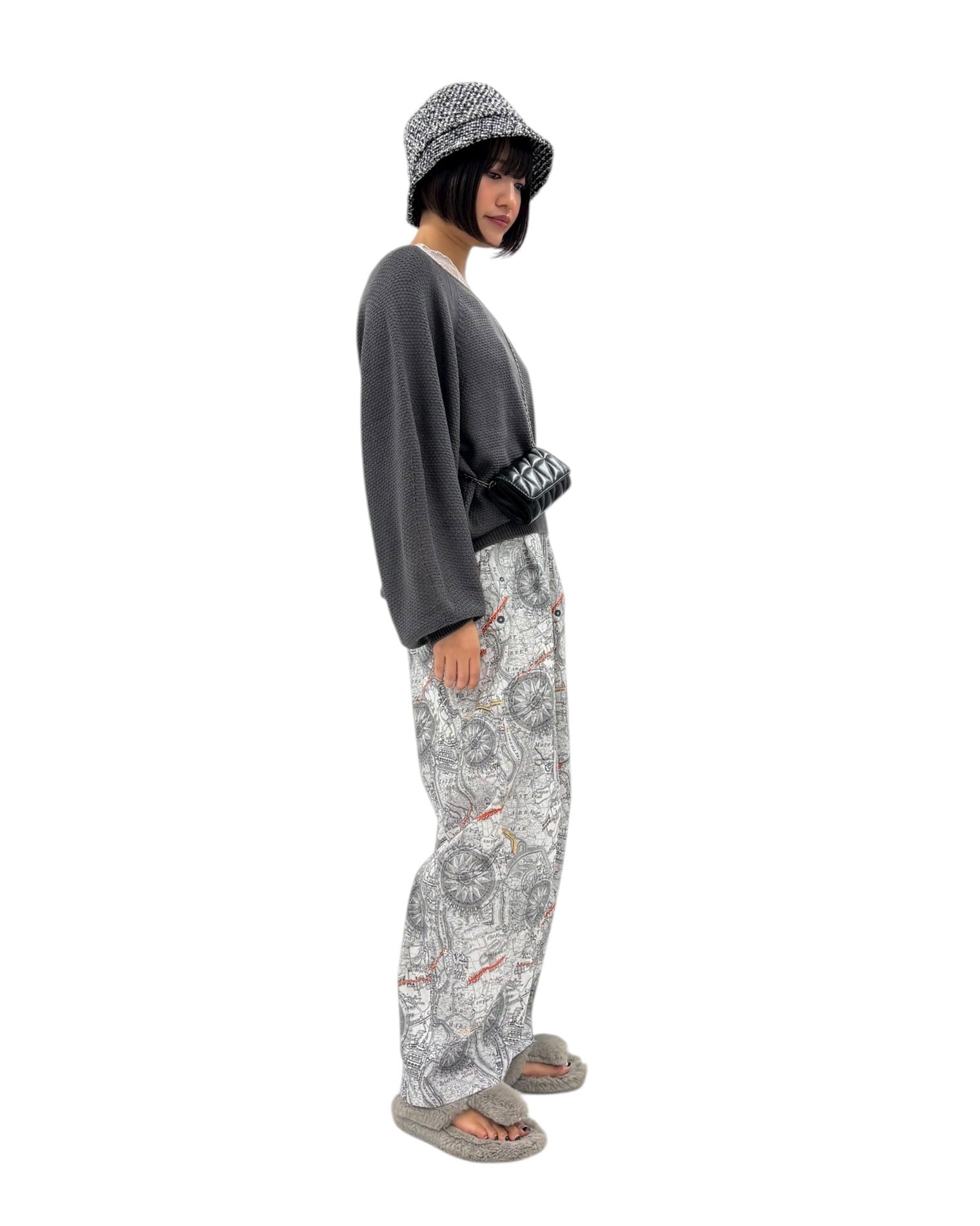 マップ柄プリントバレルレッグパンツ 816307