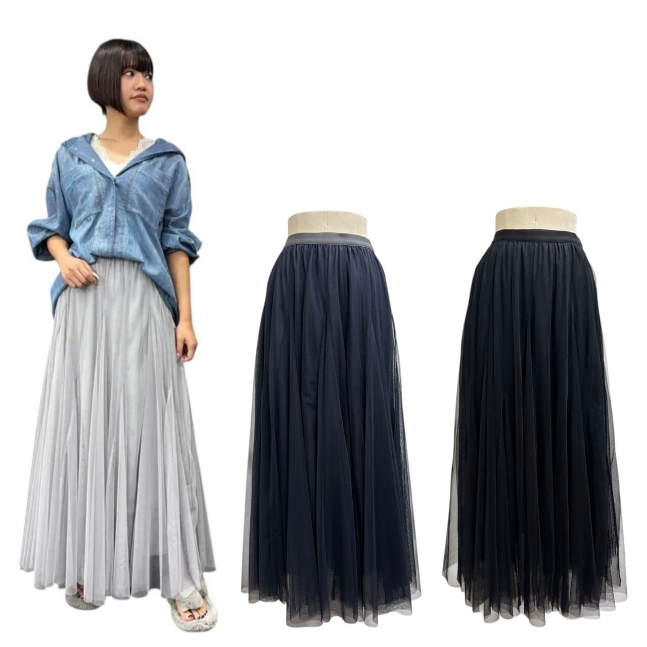 軽やかな印象に仕上がるチュールスカート。