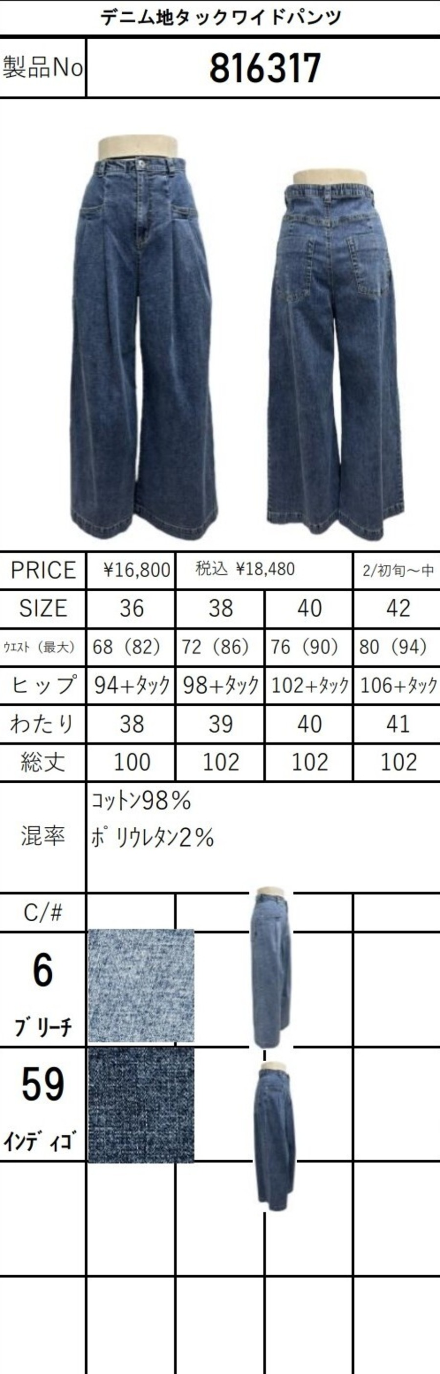 ☆予約商品☆【ayane】デニム地タックワイドパンツ 816317 アヤン