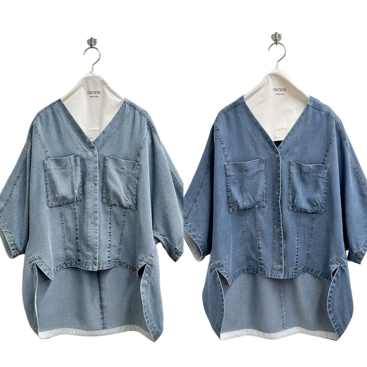 ⭐予約商品⭐【ayane】テンセルデニムノーカラーシャツ 826505 アヤン