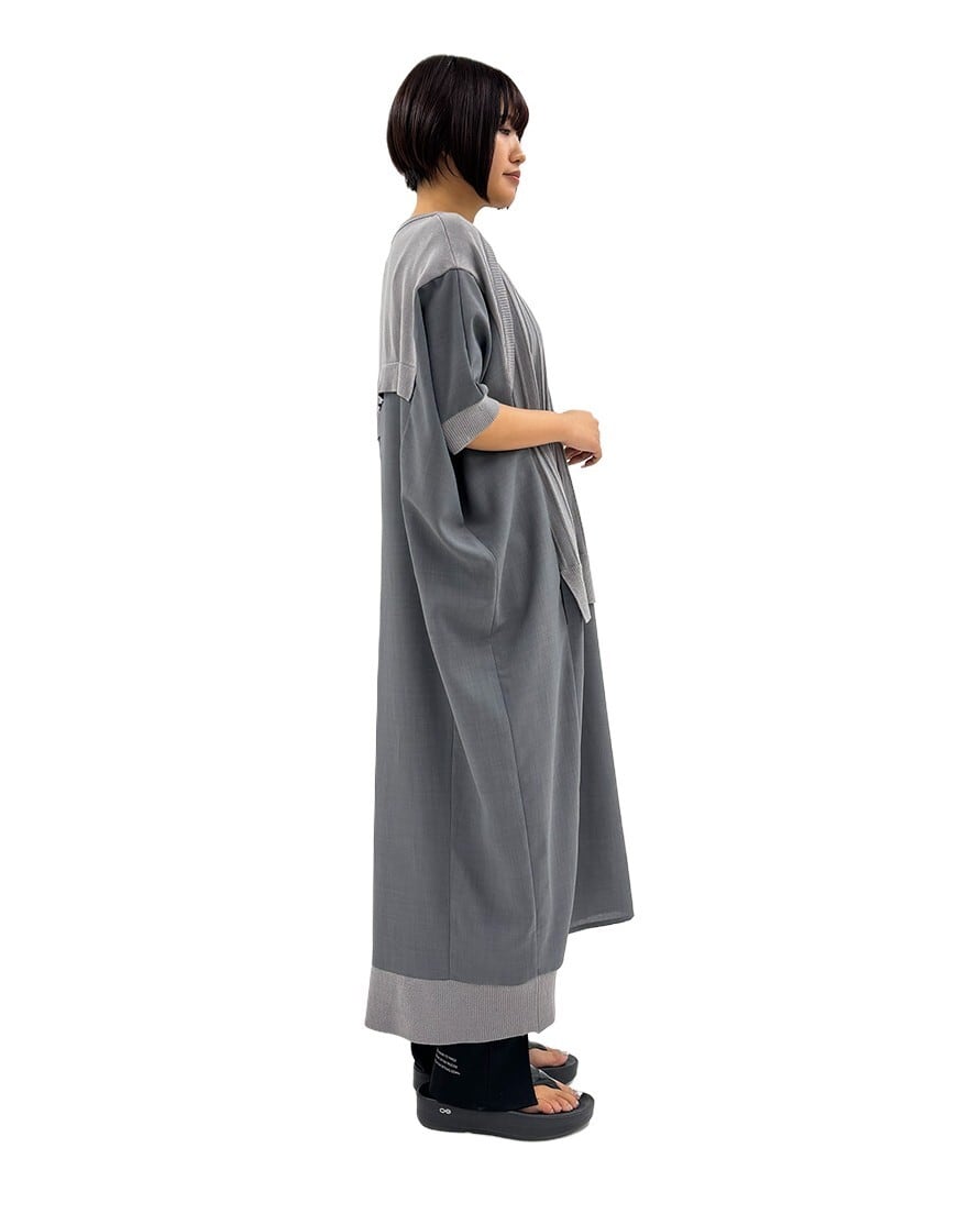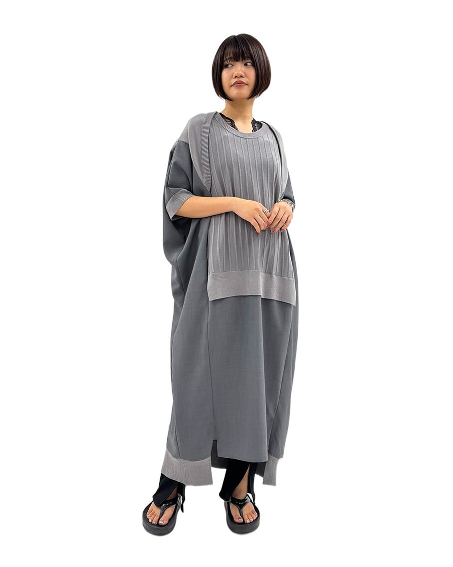 ゆるっとしたデザインと、なんとなくニットとレイヤードしたようなドッキング感が大人でモードカジュアルな印象に仕上げてくれるワンピースです。