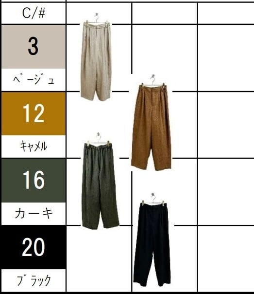 ※ヒップは平吊りで測ったサイズです。平置きにする+タックぶん広がります。