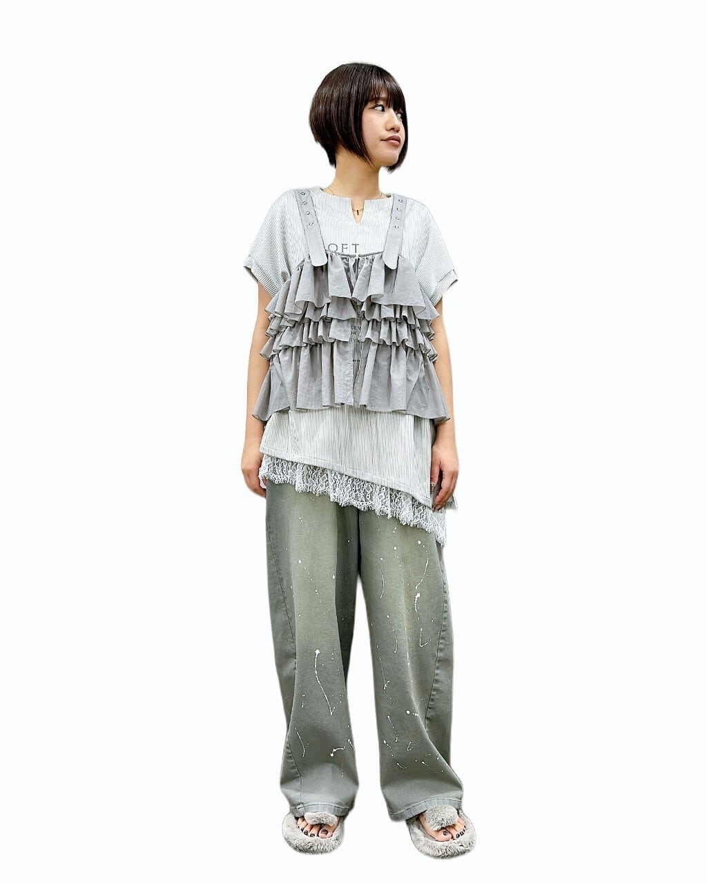 グレイッシュデニムバレルレッグパンツ 836626