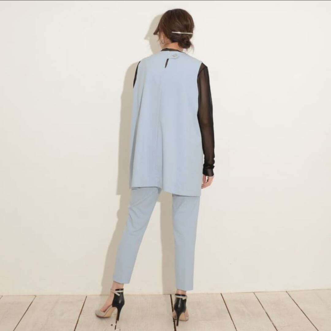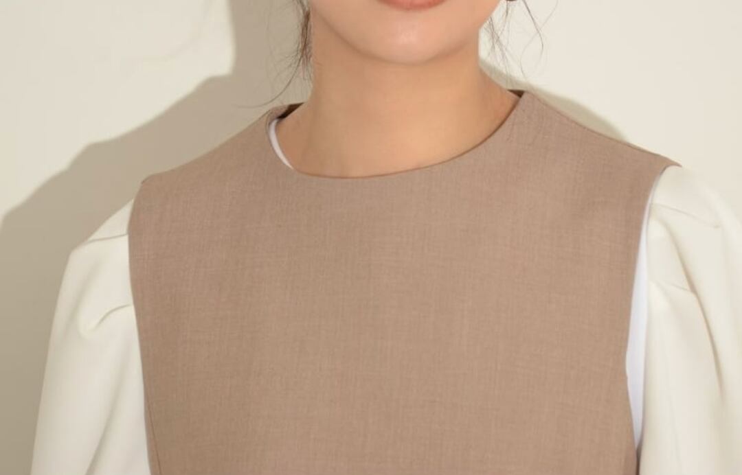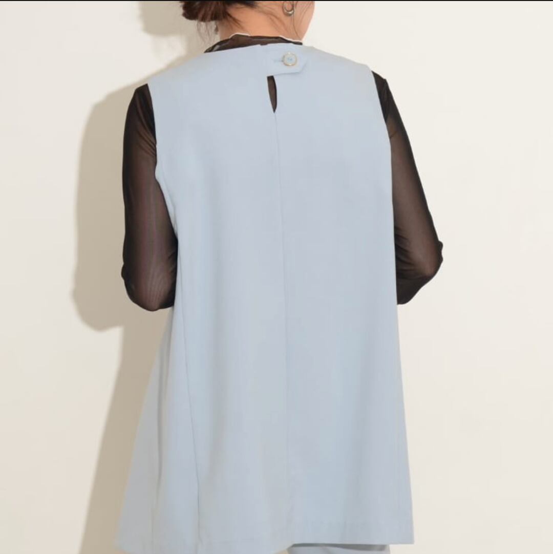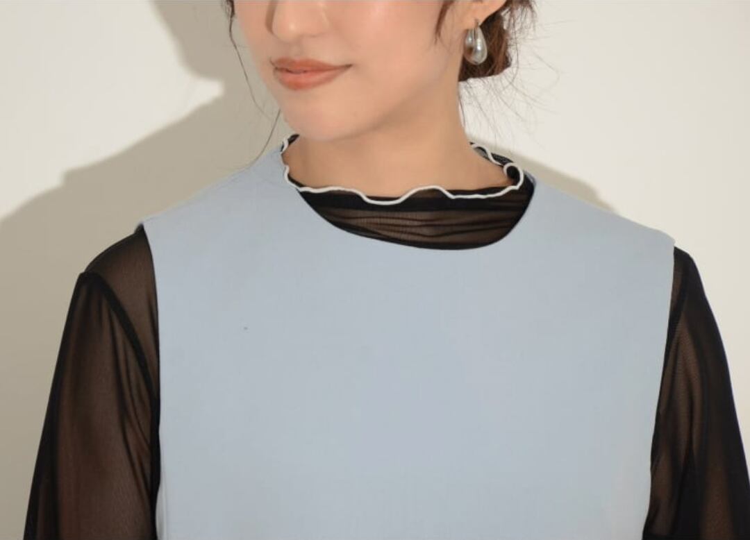 後ろネックのデザインボタンが女性らしさを引き出してくれます。