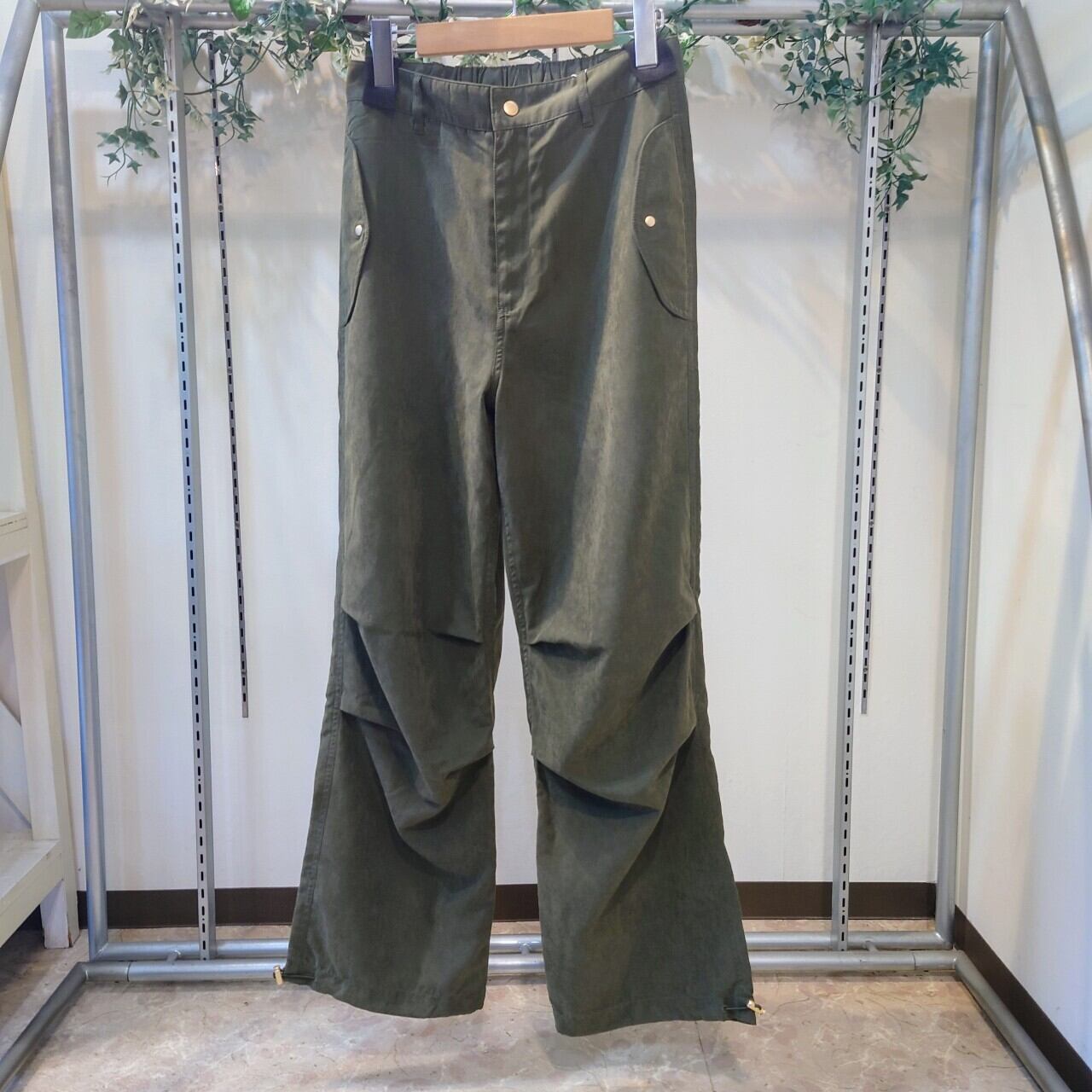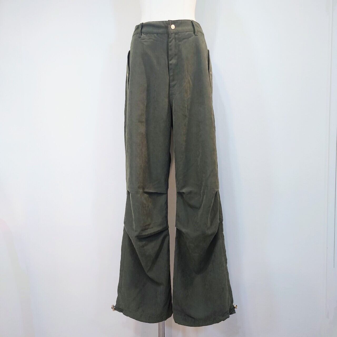 微起毛した表面はスエードチックな質感のパラシュートパンツ。