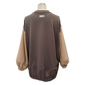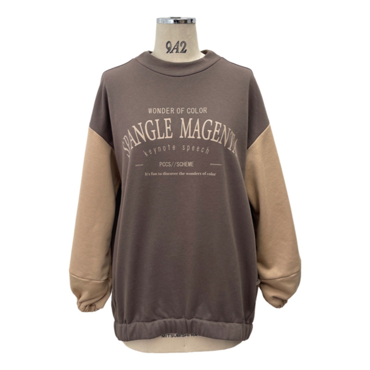 袖配色のスウェット素材のプルオーバー。
