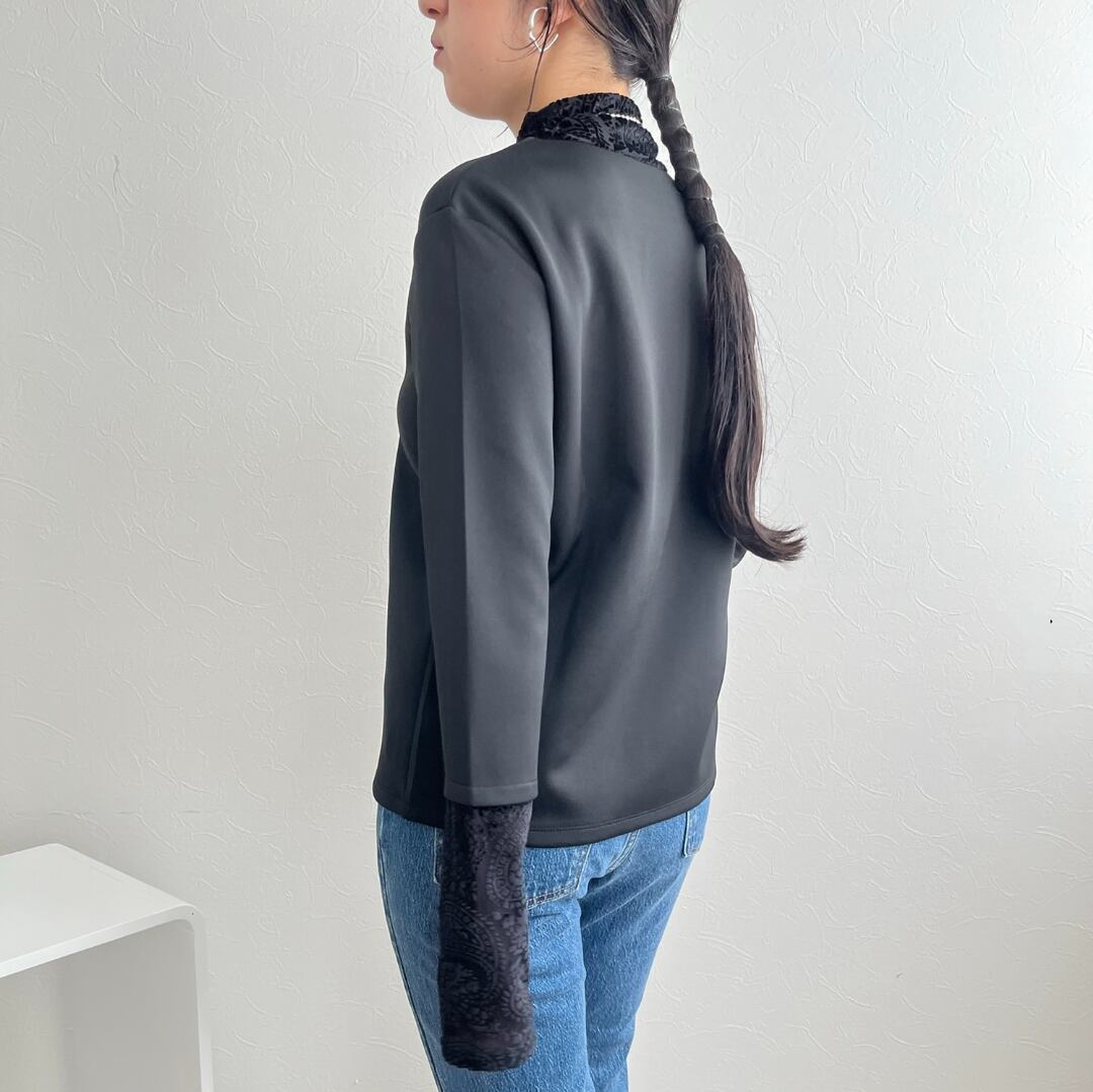 【LHELBIE】オパールベロアレイヤードライクトップス (ブラック) 517370 レルビエ