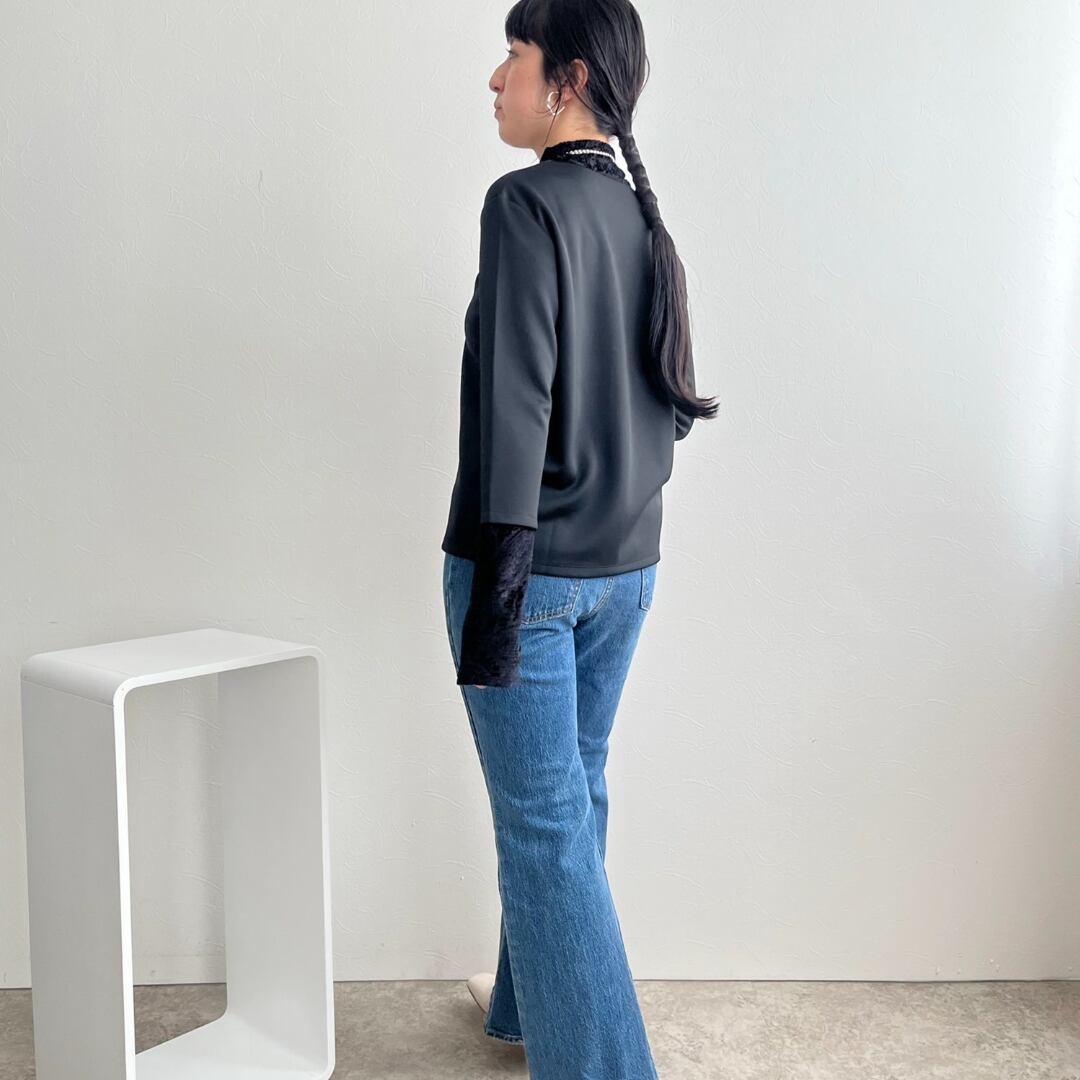切替部分に立体的で表情があるオパールベロアを使用しており、透け感もプラス。