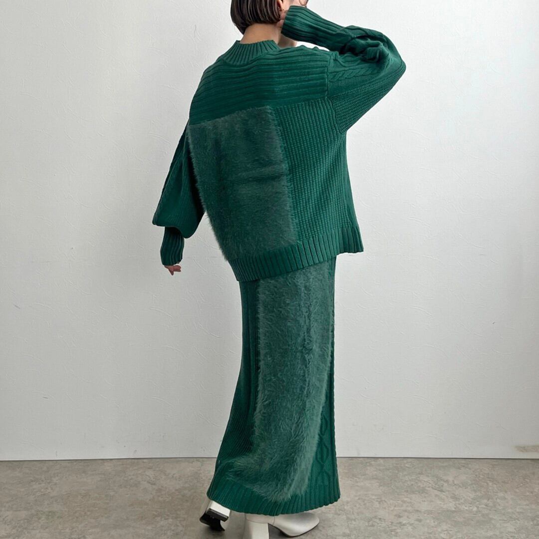 同素材の編地切替ニットトップス【51767C】とセットアップで着るのもおすすめです。