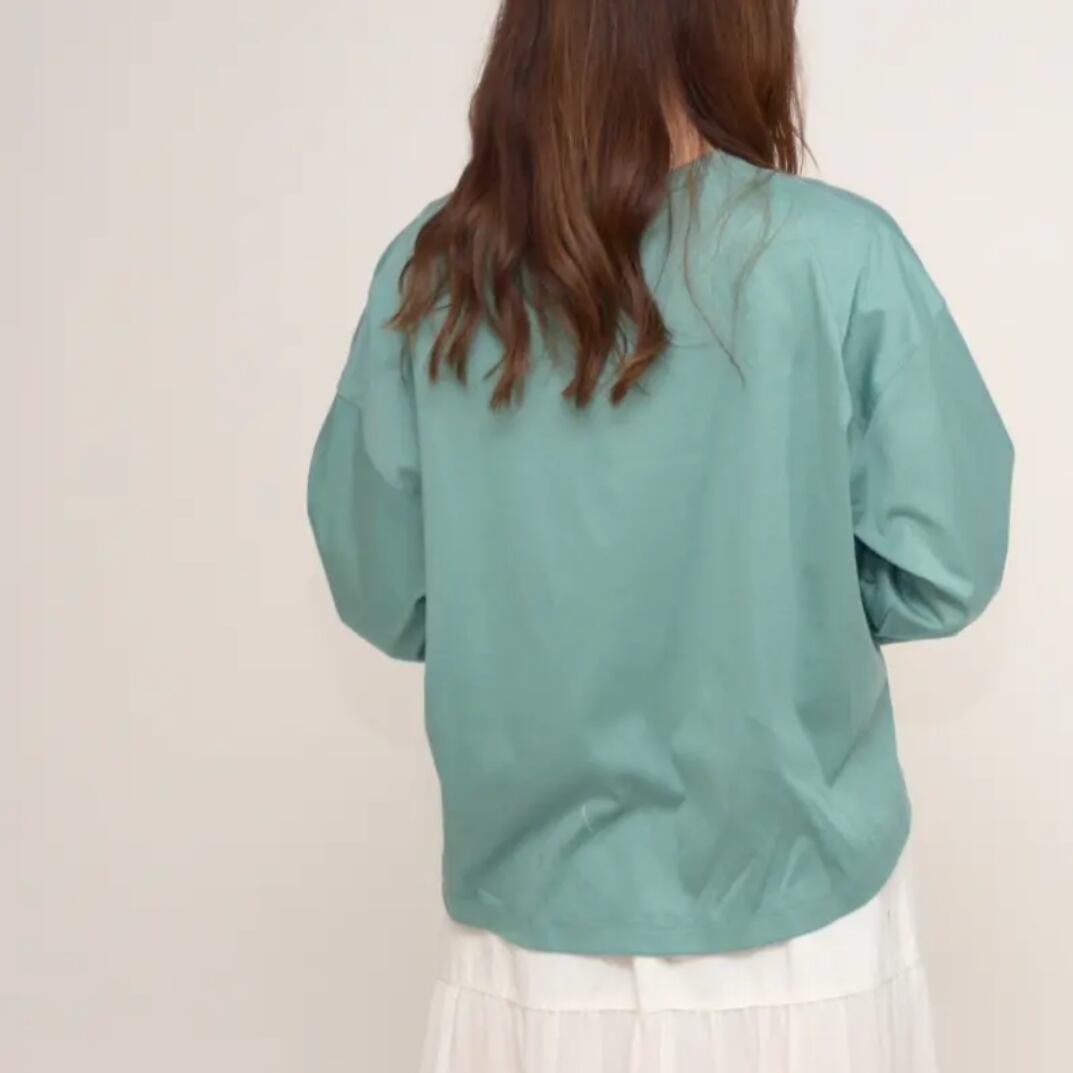 適度なゆるさがあり、女性らしいソフトな印象になるシルエットです。
