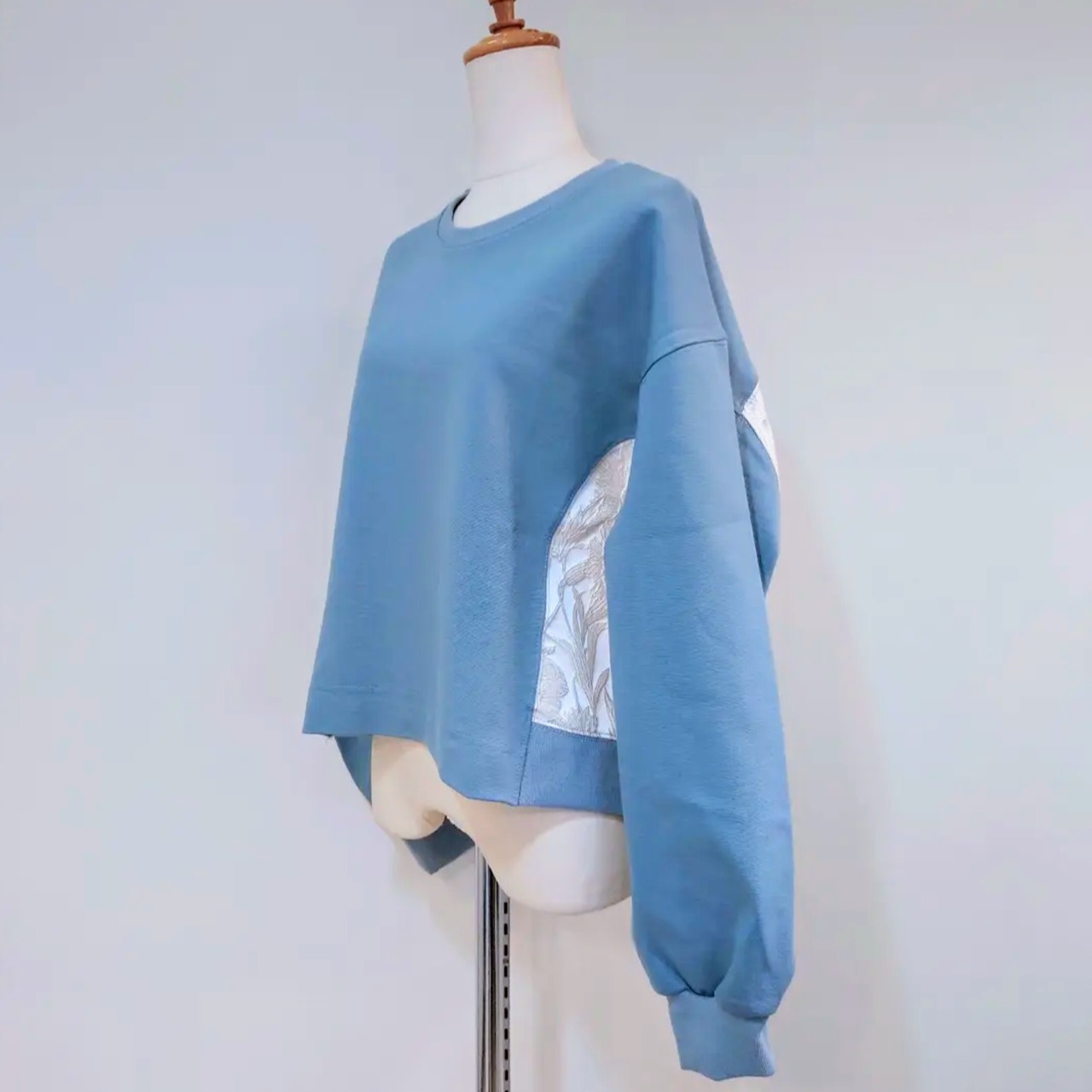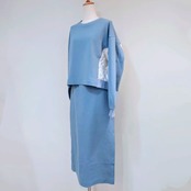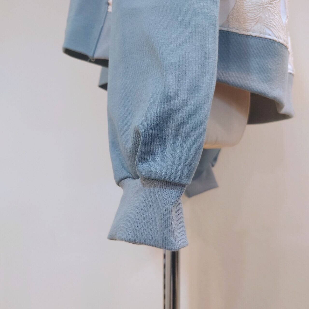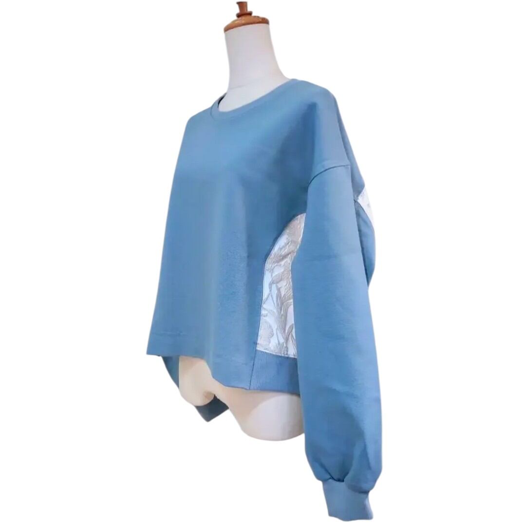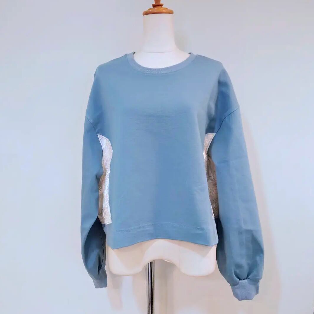 花刺繍の布帛の切替がポイントのプルオーバー。