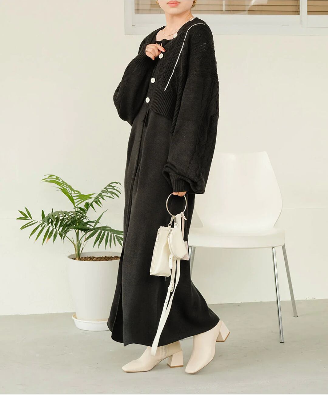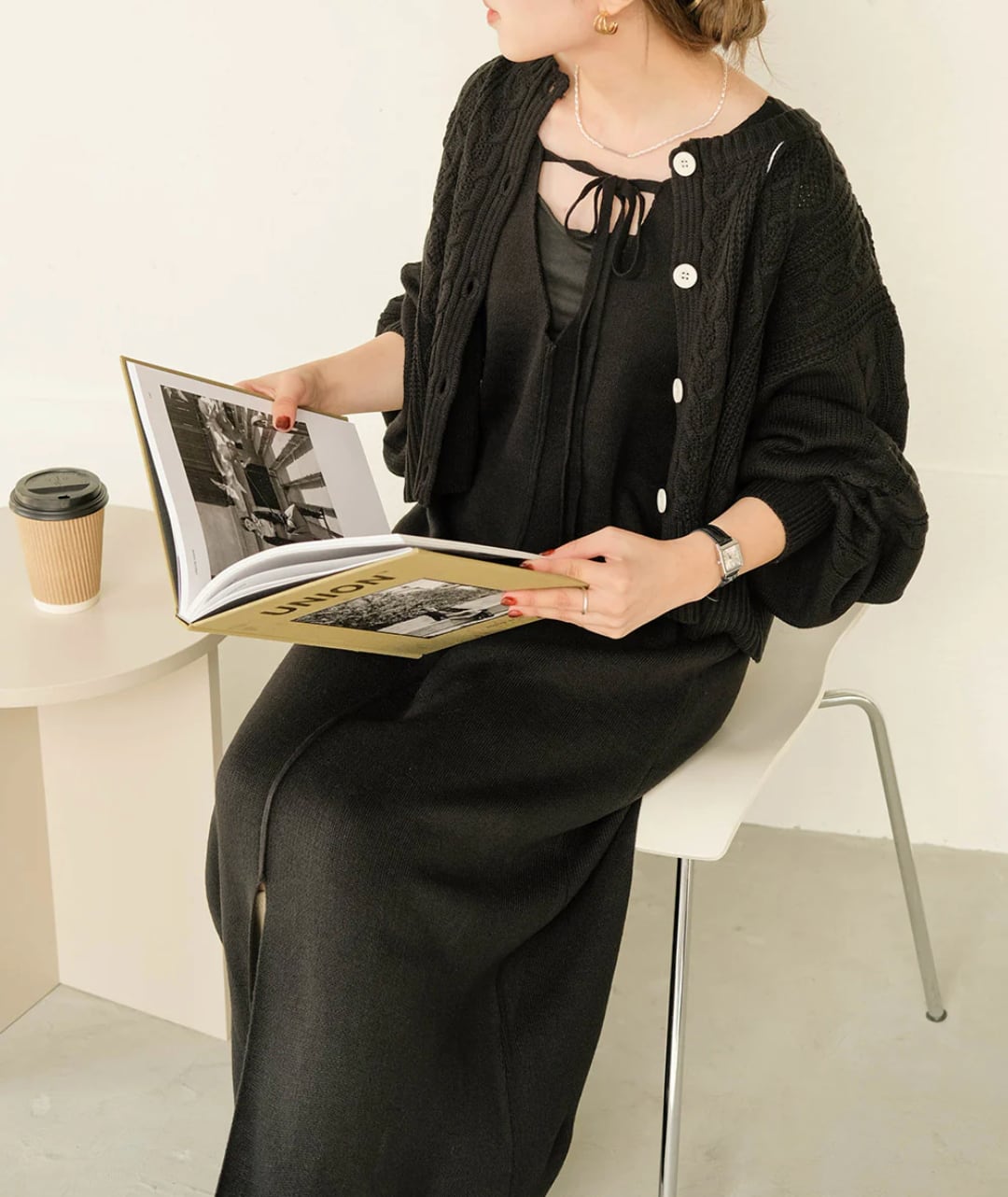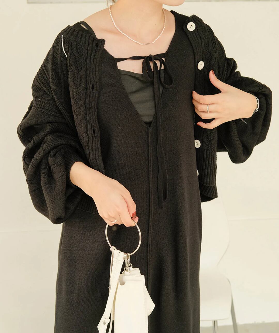 カーディガンとワンピース、どちらもシンプルなデザインなので、別々にも使えます。