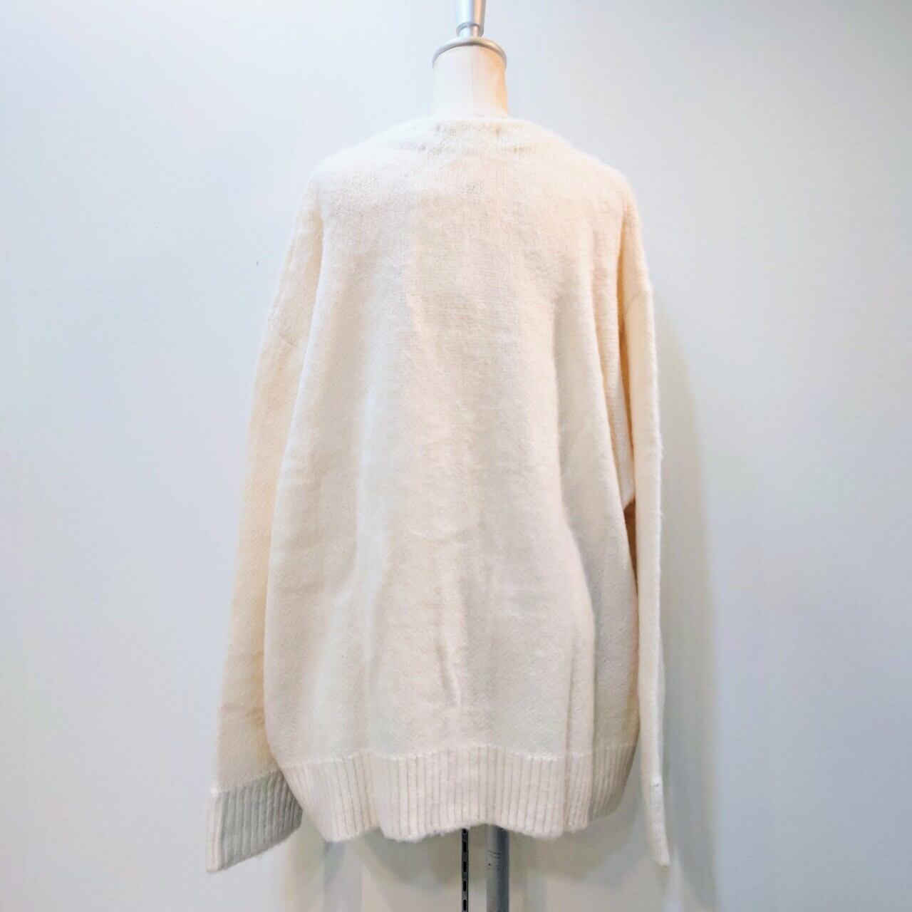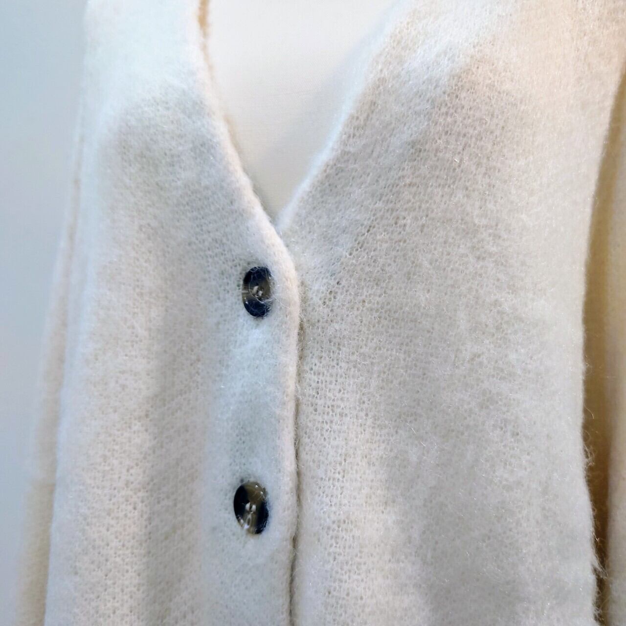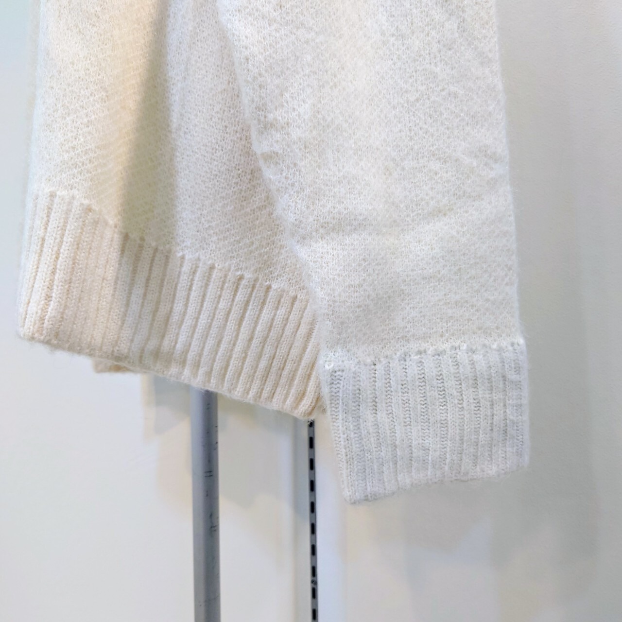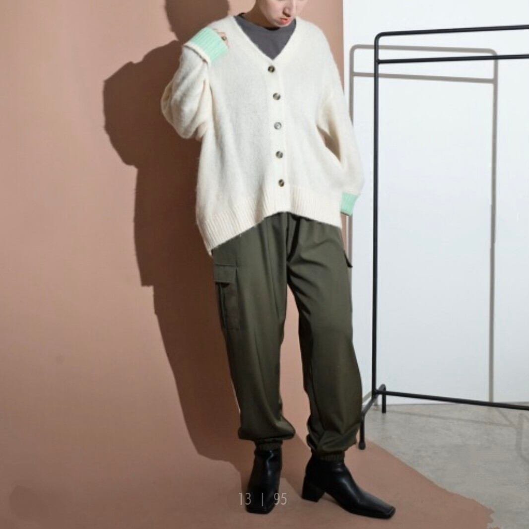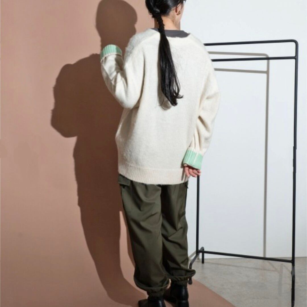 袖口の配色が目を惹くシャギーニットカーディガン。