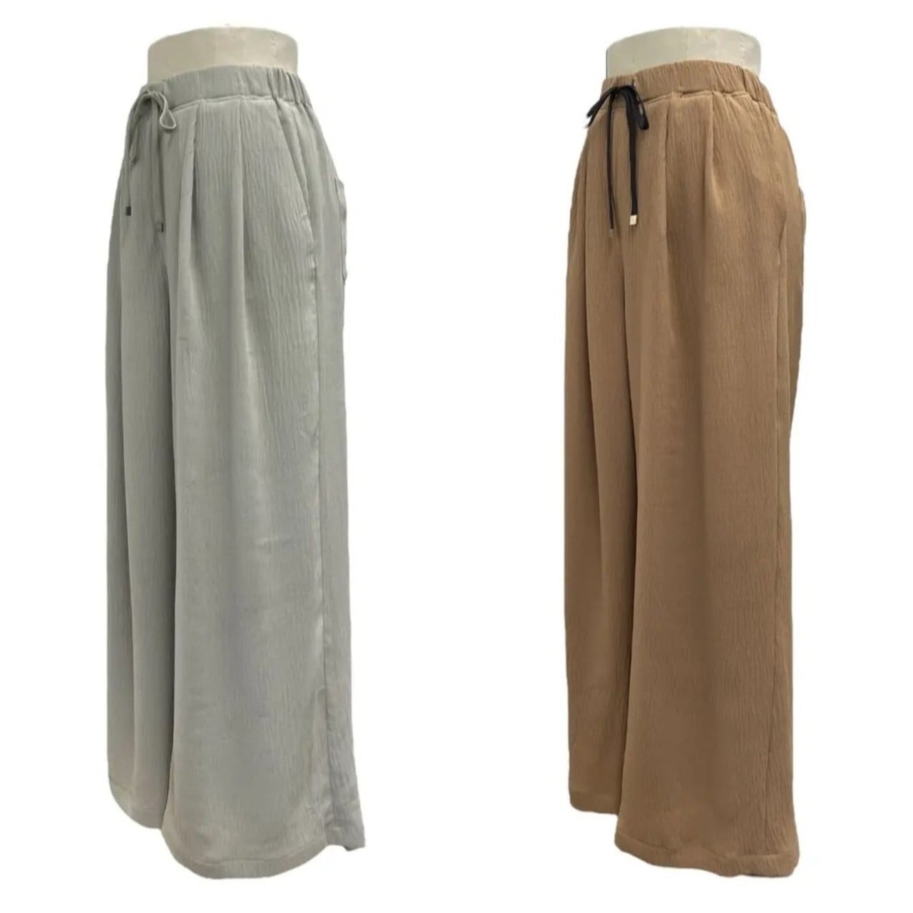 「落ち感、肌触り、伸縮性」全てにおいて高品質な合繊素材のワイドパンツ。