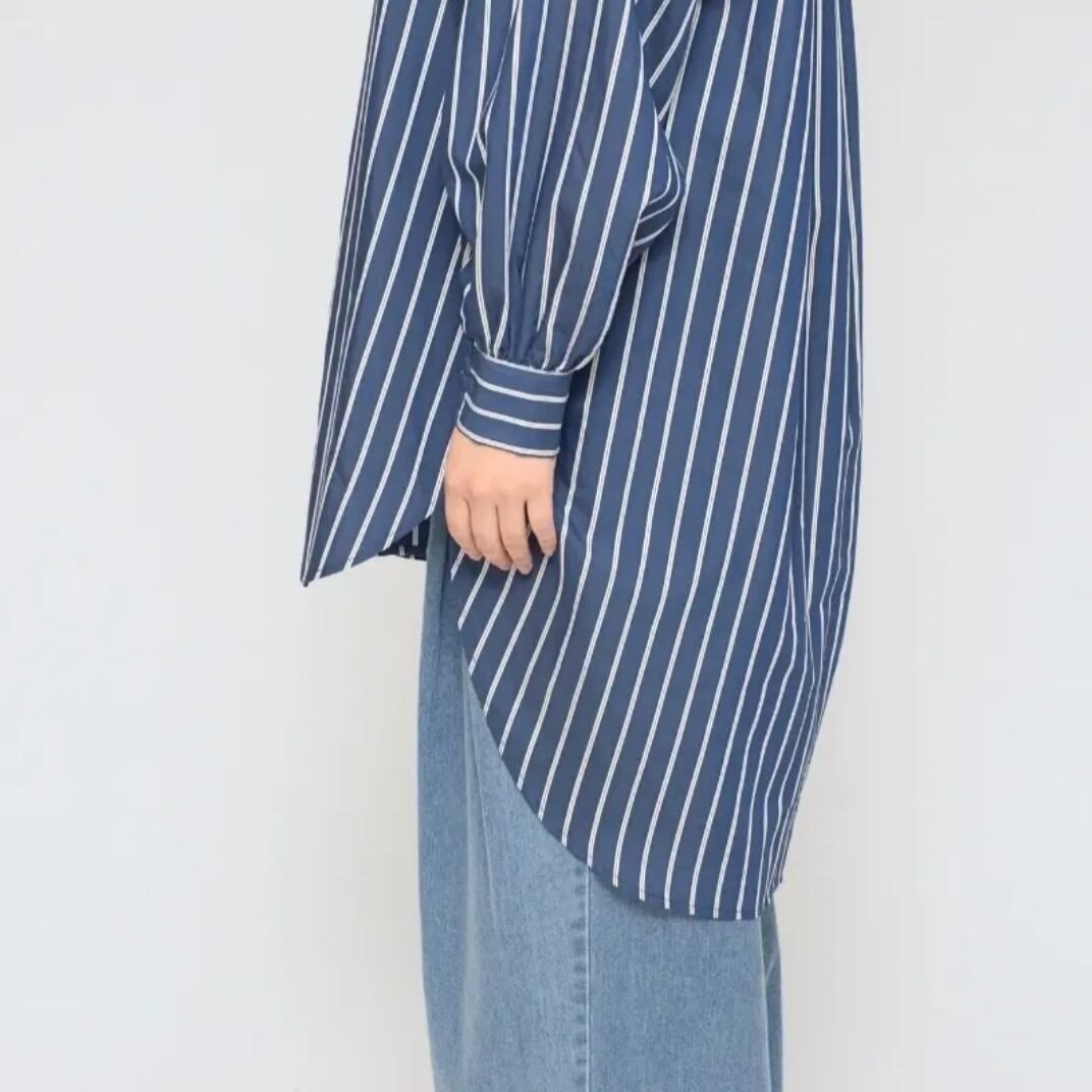 【Praia】バックプリーツストライプロングシャツ LEZ-2409B プライア